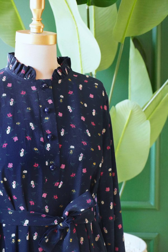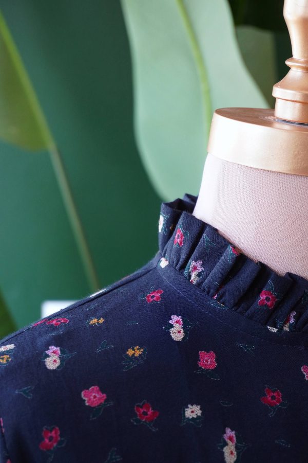 پیراهن تک گل فاخر با رنگ سورمه ای