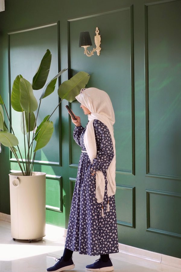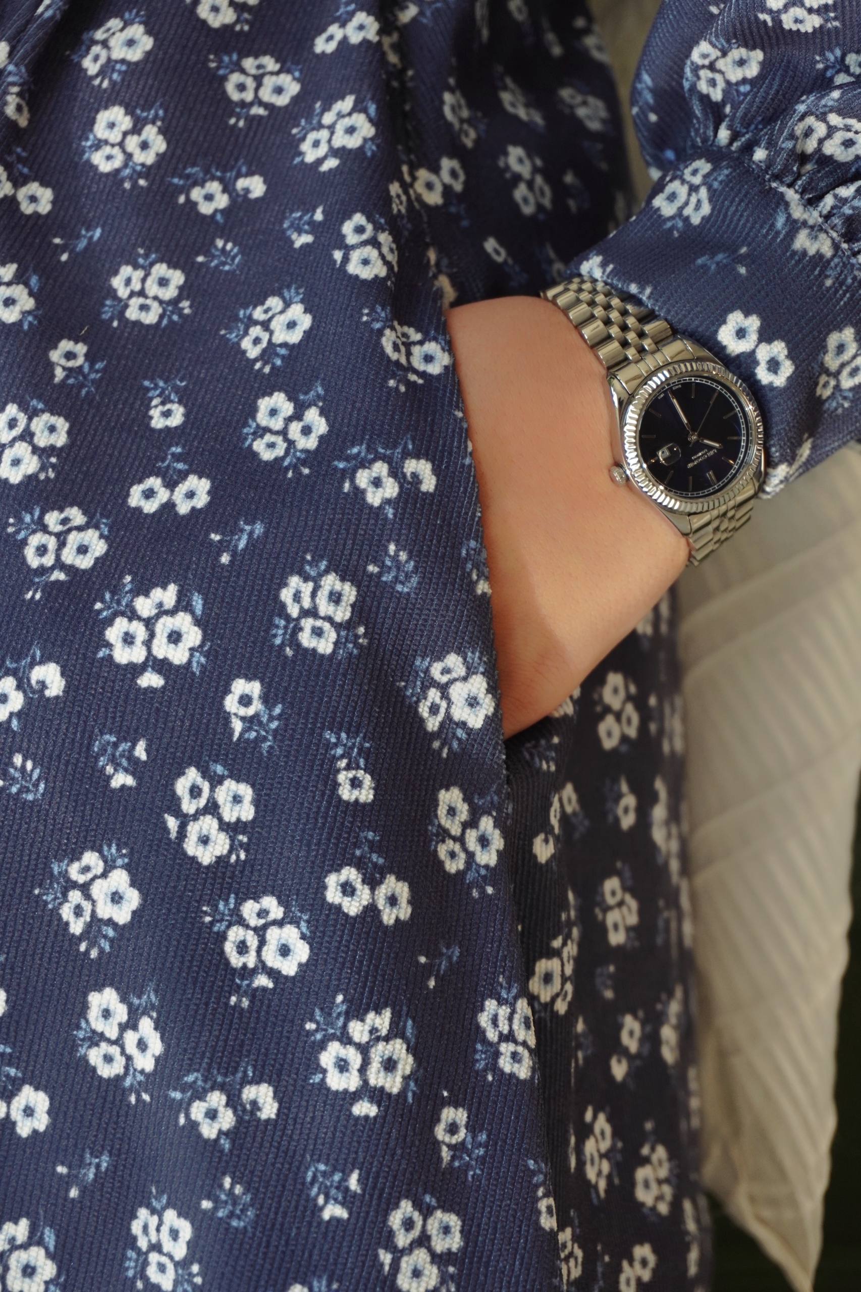 پیراهن فاخر کبریتی گلریز سورمه ای